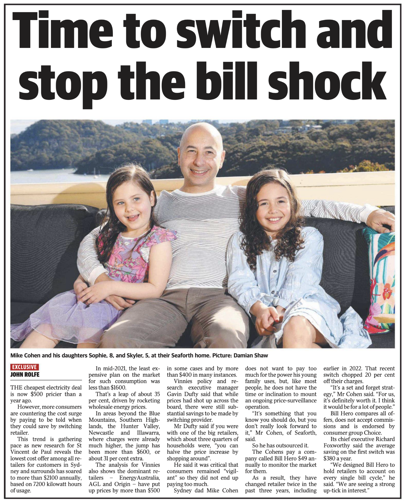 Today, The Daily Telegraph in Sydney published their story about how to beat energy bill shock, featuring Bill Hero subscriber Mike Cohen.