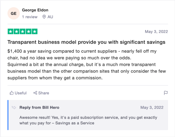 Bill Hero also makes it easy to find and buy GreenPower renewable energy at the best possible prices. This maximises your Green impact while minimising both the direct cost to you and the ability for your retailer to skim your Green investment to their own benefit.