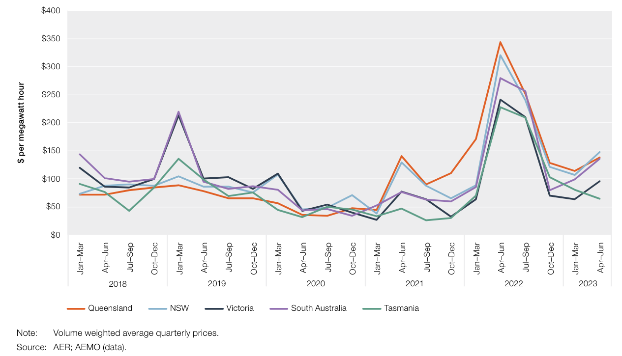 The Australian Energy Regulator’s (AER) latest State of the energy market report highlights that the wholesale price shocks of 2022 have now receded; however, the vulnerabilities that cause the 2022 price shocks remain. This includes the lack of a domestic gas reservation policy for East Coast Australia and limited hedging opportunities for retailers.