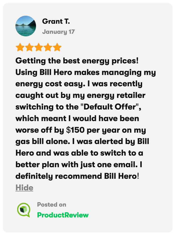 Not a subscriber yet? What are you waiting for! Never overpay for energy again! Bill Hero automatically compares every bill to help keep you always on the best priced plan.