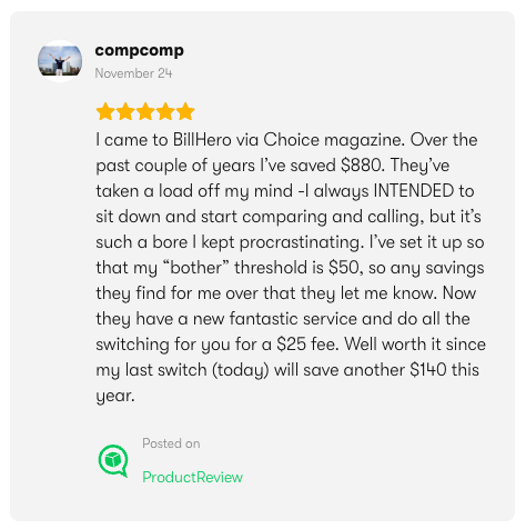 We're delighted to announce that it's been won by Bill Hero subscriber Nathan from Cranbourne VIC 3977. Congratulations Nathan, you now have a 12-month extension to your Bill Hero absolutely free!
