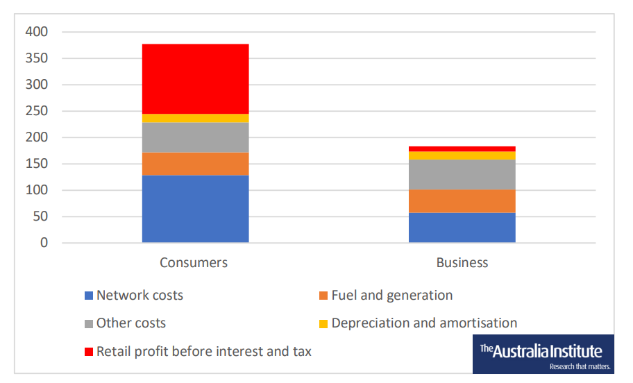 The Australia Institute research digs deeper into this and finds that AGL and Origin Energy overcharge residential households for electricity and gas, achieving profit margins far exceeding those of business customers.
