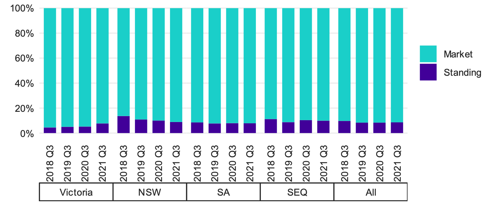 This is understandable since these prices are reported in a simple an easily digestible way. However, the vast majority of energy consumers in the NEM are on market offers.