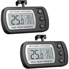 Waterproof, LCD Display, ℃/℉ Switch + Max/Min Record, for Kitchen, Home, Restaurant fridge & freezer. 2 Pack, Battery Included.
