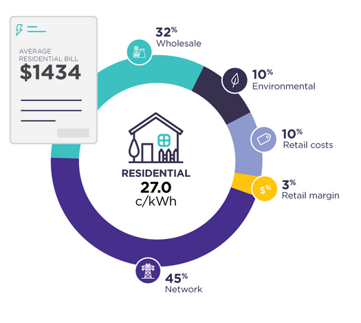 Network prices represent about 45% of an average retail bill, so changes to this bill component will drive changes to retail pricing. Network pricing is controlled by a regulated annual process, with new network pricing coming into effect for every NEM jurisdiction on 1 July each year.