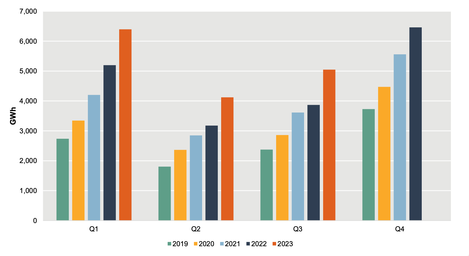 Q3 demand is typically high in southern Australian regions due to the increased demand for heating in the cold winter months. 2023 was the first year ever where Q3 demand was lower than Q2 demand.